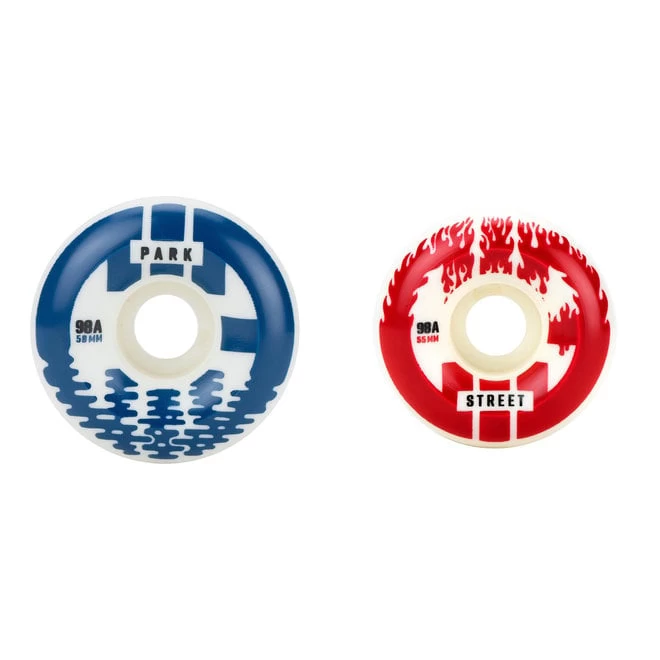Street wheels are smaller for faster acceleration. Perfect for all types of terrain.