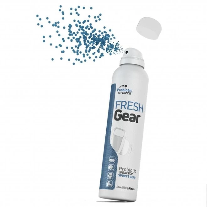 Use the Fresh Gear probiotic spray on all non-machine washable sports equipment and the good bacteria in the product start their work.