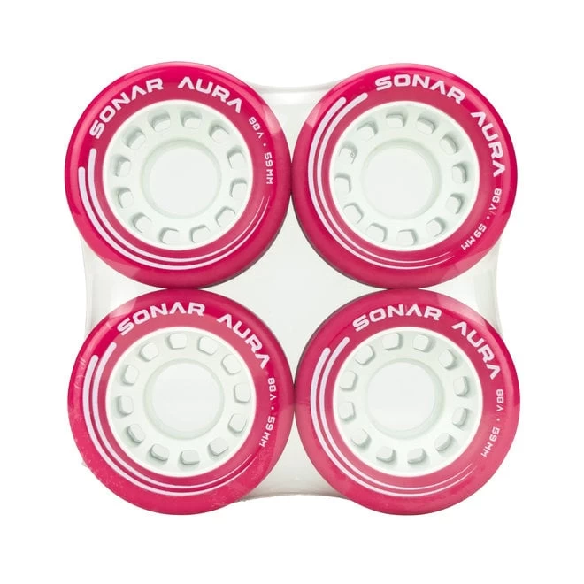 The Sonar Aura offers good indoor skating performance at a nice price. Aura wheels have predictable grip, smooth roll, and excellent durability with little break in time. Sold in packs of four wheels. To order a full set of wheels, be sure to set your quantity to two.